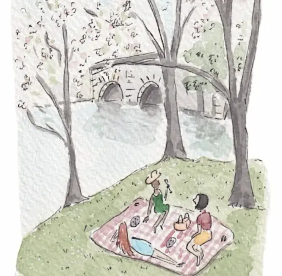 Celebrate Spring in the DMV with this guided 2-hour watercolor class. You will be provided with a pre-drawn image of a Spring picnic alongside a river and some cherry blossom tress.