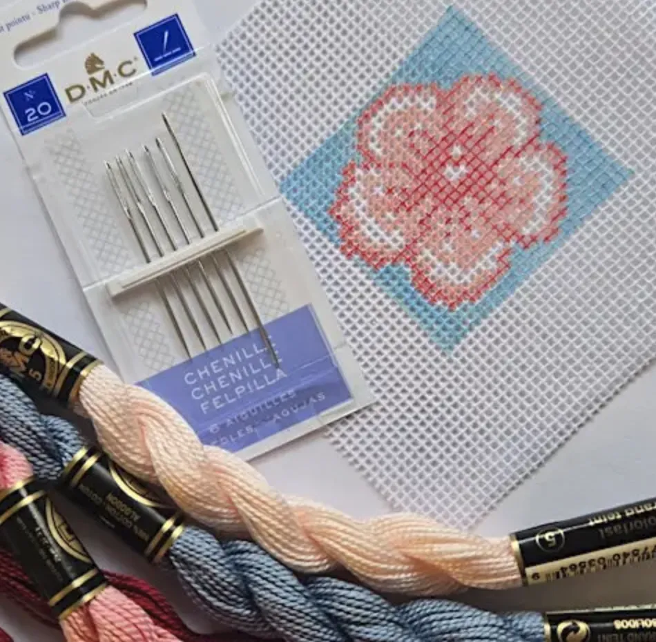 Come learn with Miri as she guides you step-by-step through your very first #ndlpt canvas. In this hands-on workshop, you’ll be introduced to the fundamentals of needlepoint while stitching on a beautiful cherry blossom hand-painted canvas.