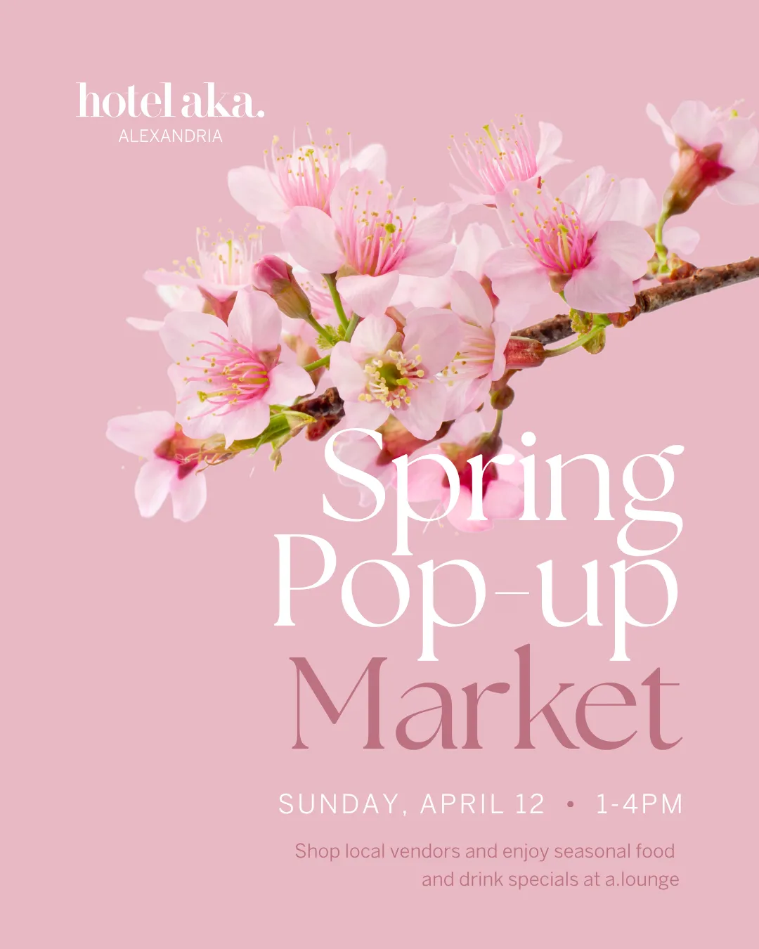 Welcome spring with a curated pop-up market at Hotel AKA Alexandria. Discover a collection of local makers, fresh finds, and thoughtfully crafted goods, alongside seasonal food and drink specials from a.lounge and a.cafe.